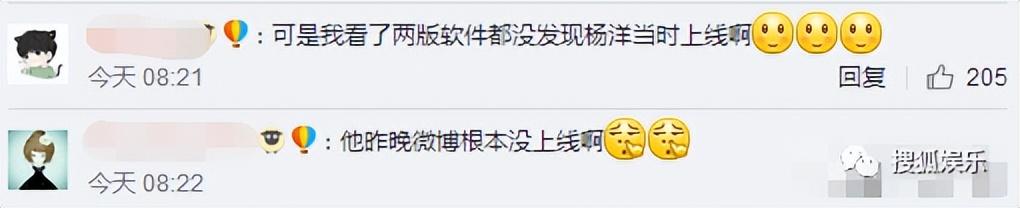 粉丝晒出了APP上的杨洋的“微博上线时间”的图,显示他在当天凌晨是没在线的。