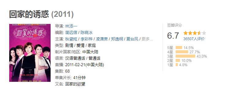 谁能想到,时隔多年,《回家的诱惑》评分居然一路升高,现在已经远高于及格线,6.7分。